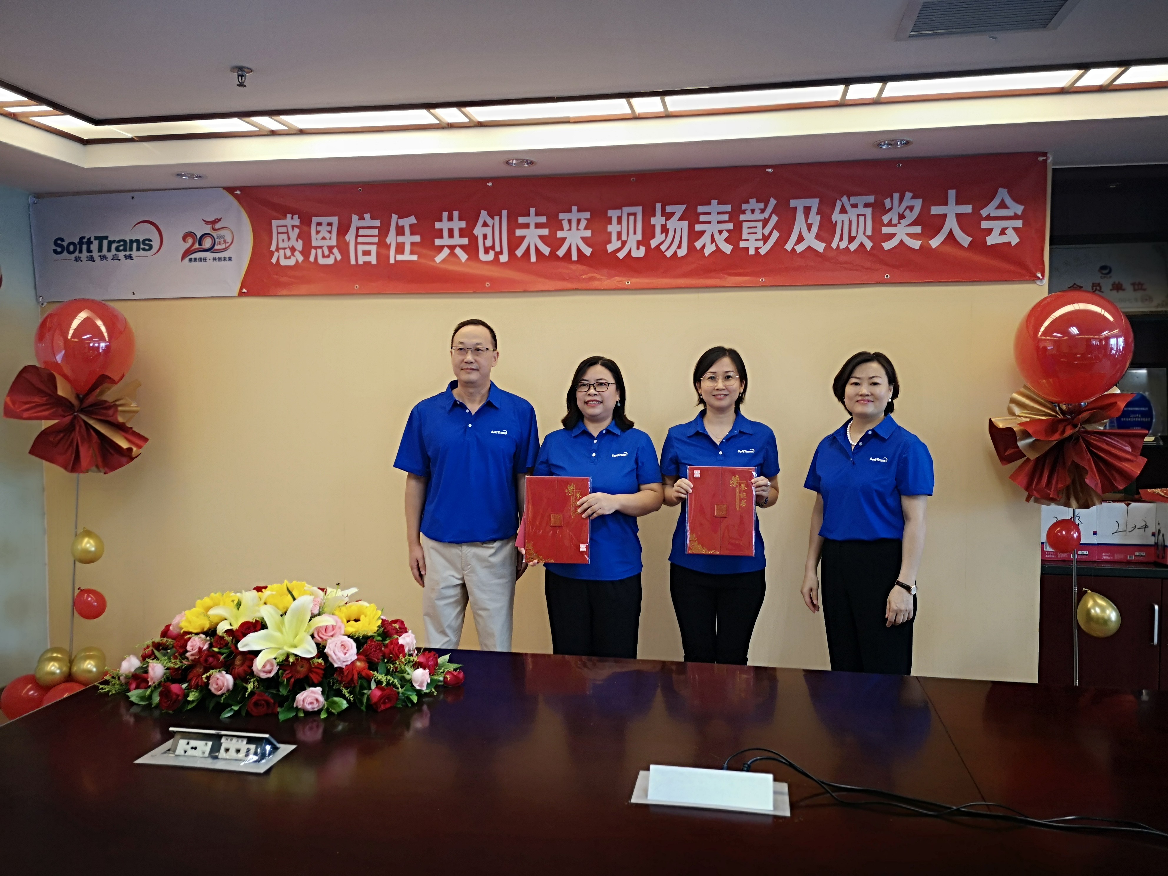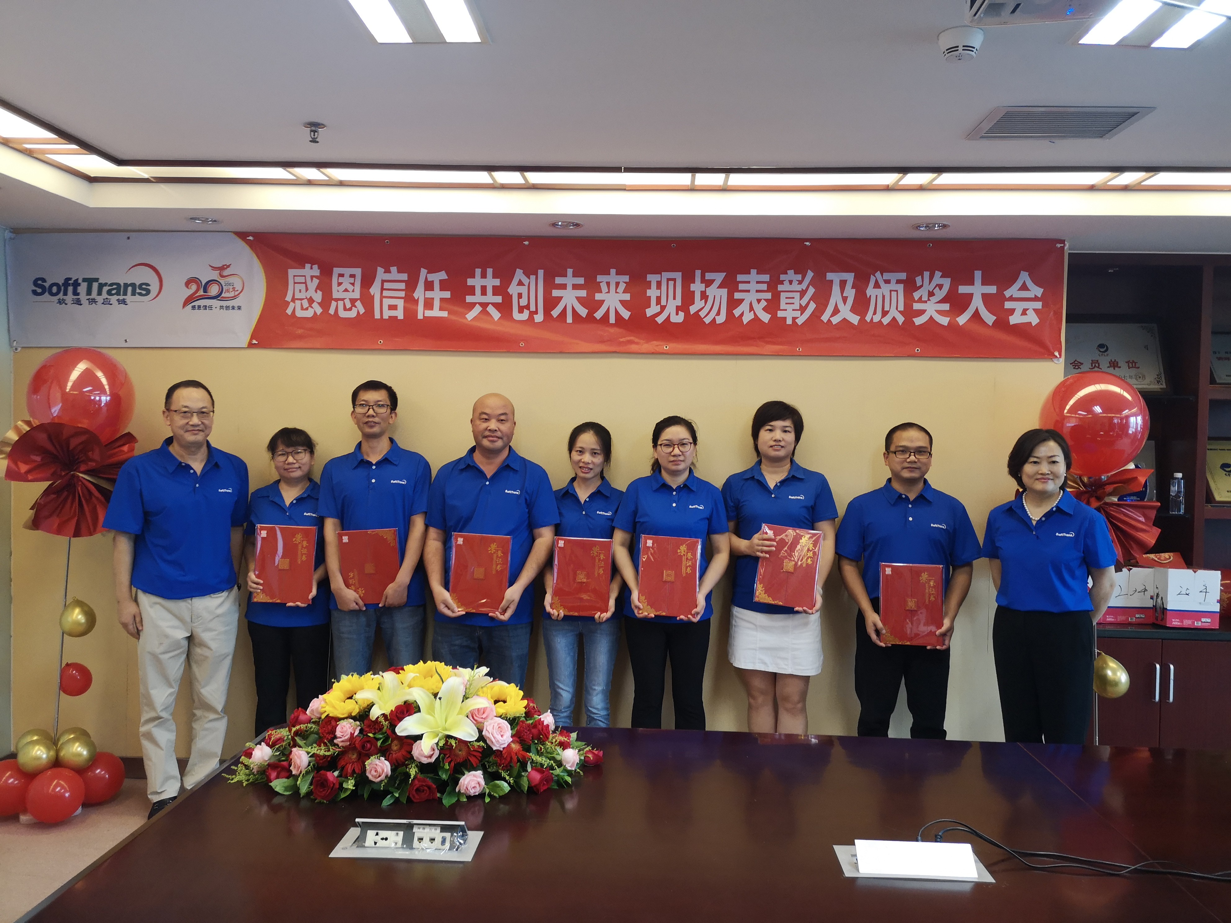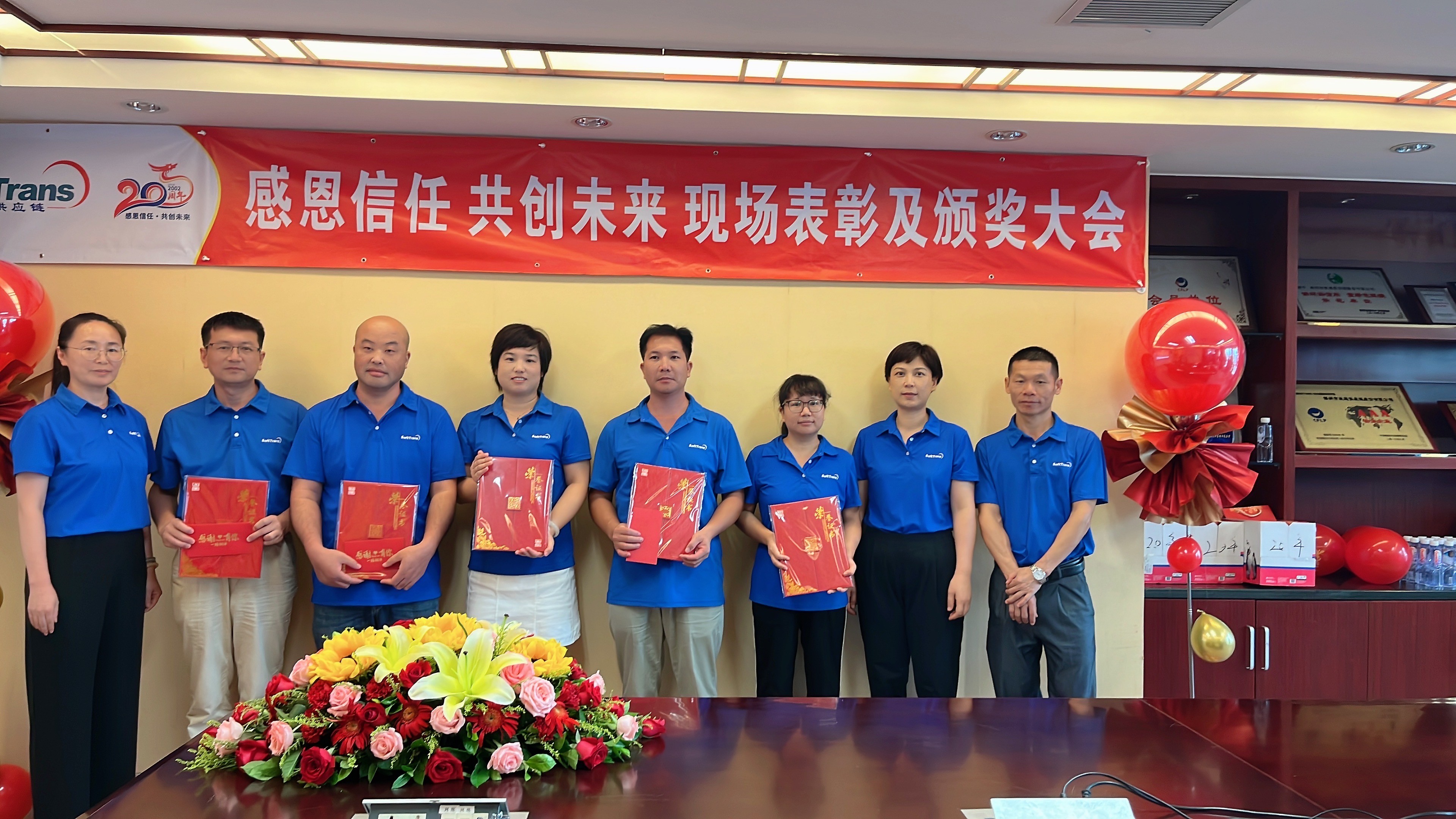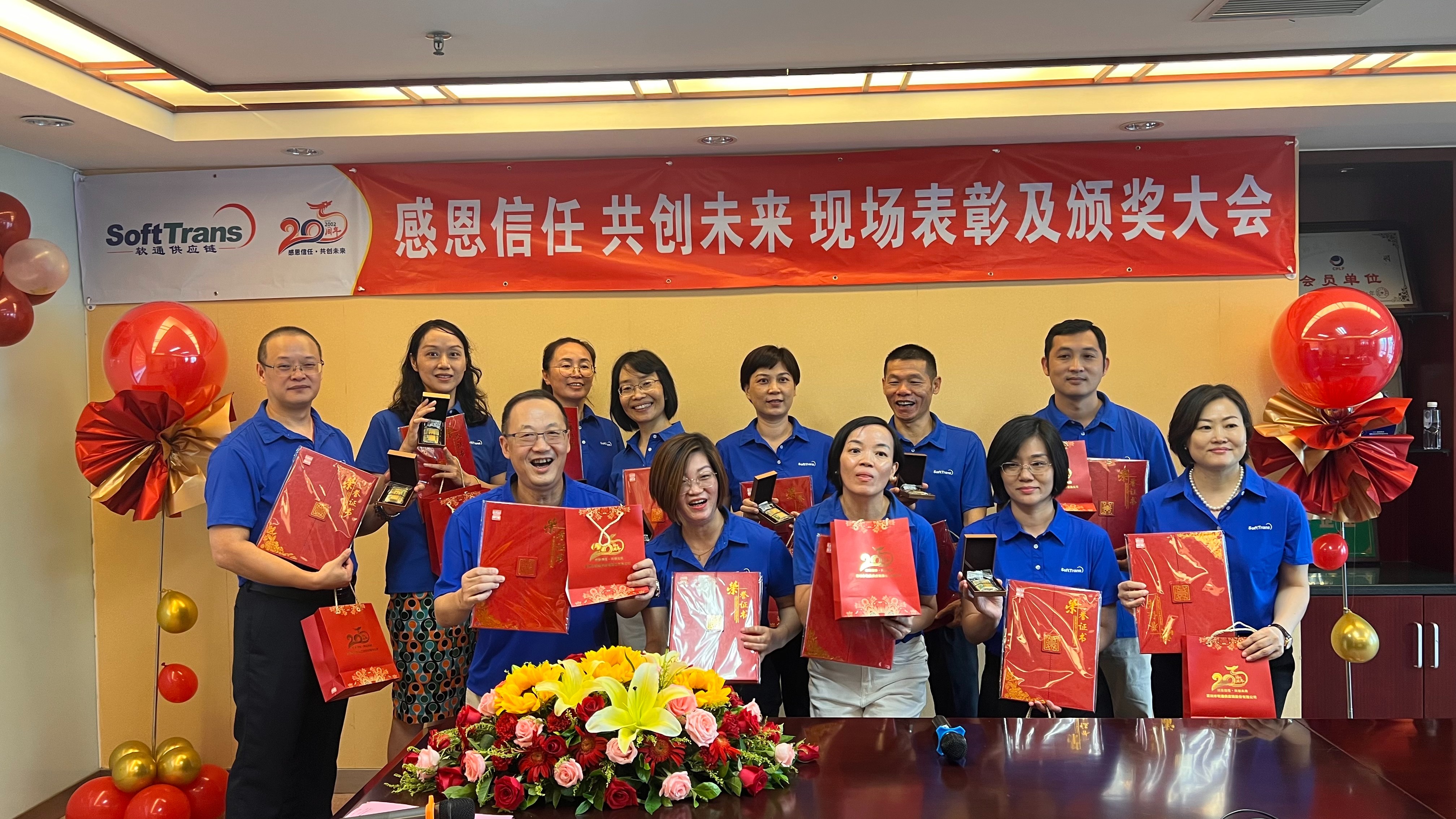 太阳成集团tyc122cc自2002年成立至今,经过了20年的发展,作为国内一家领先的综合物流服务商,多年荣获的众多奖项和荣誉,都离不开太阳成集团tyc122cc人上下齐心、努力付出、共同奋进。2022年8月26日是个特别的日子,这一天,太阳成集团tyc122cc集团总经理臧建伟先生携全体总经办领导班子出席表彰现场、各部门主要负责人以及受表彰、获奖员工代表现场参会,此次通过“腾讯会议”现场直播和云端共享的方式,各子公司、办事处近100多名员工线上观看和互动,共同热烈庆祝太阳成集团tyc122cc成立二十周年,回顾辉煌历程,表彰先进人物,让本次表彰志庆活动更有纪念意义。