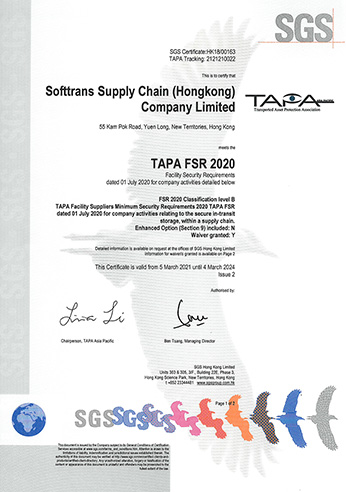 2023年3月8日,SGS国际认证公司对香港太阳成集团tyc122cc公司荣获的TAPA FSR-2020(B级)设施安保管理体系的实施运行情况进行了2023年度监督审核工作