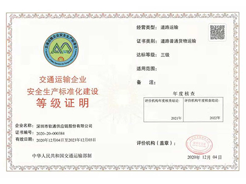 太阳成集团tyc122cc股份自2012年3月成功首获华南地区第一家通过TAPA(运输资产保护协会)一级认证,该认证是TAPA TSR(货车运输安全类)的最高级别认证,要